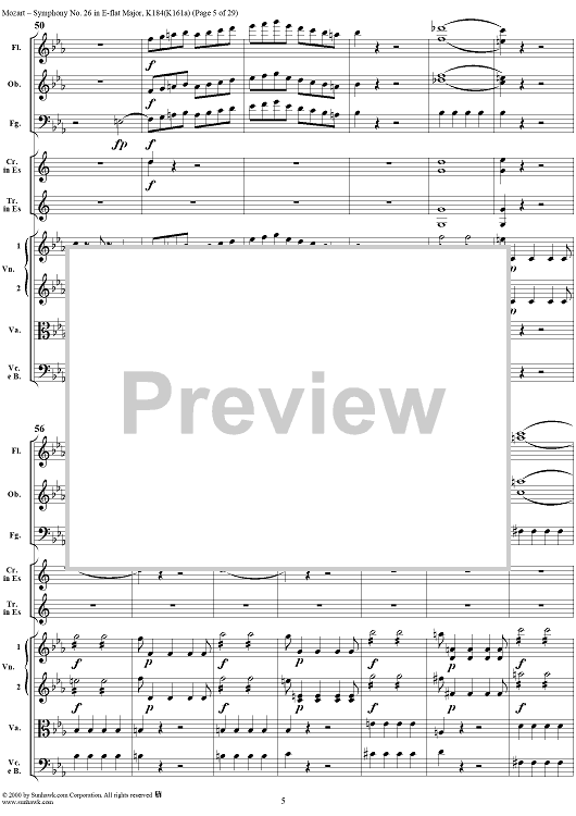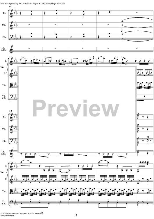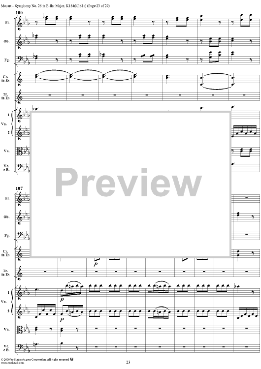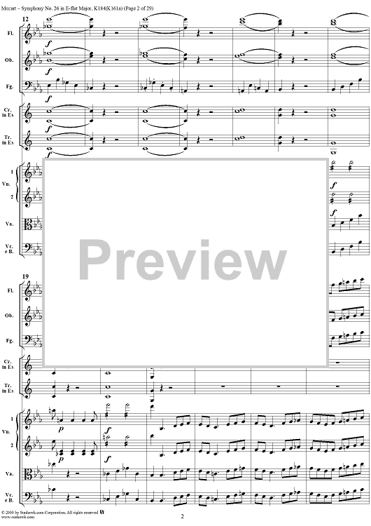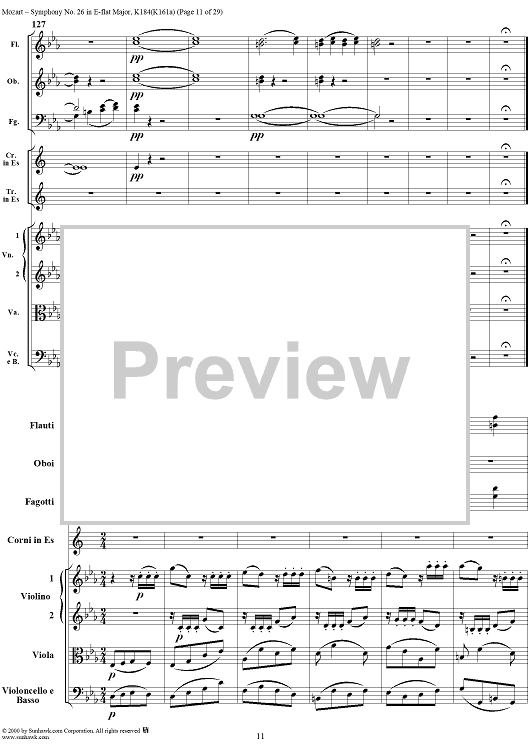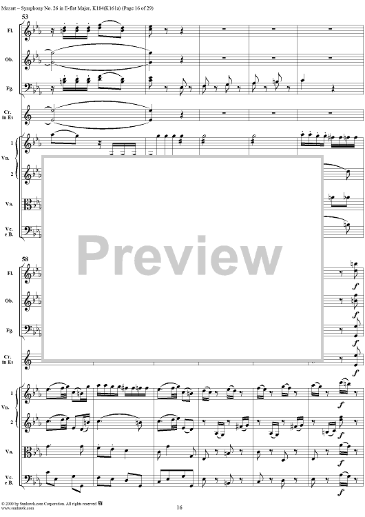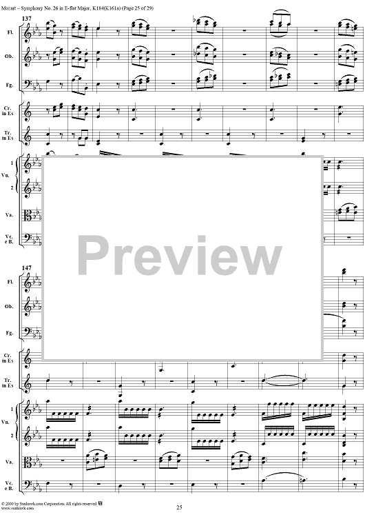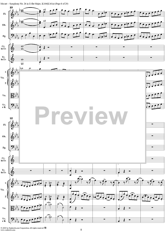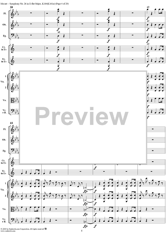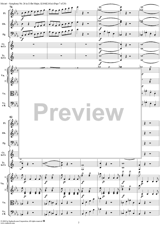 Digital Sheet Music for Symphony No. 26 in E-flat Major, K184 - Full Score by Wolfgang Amadeus Mozart scored for Orchestra; id:220771