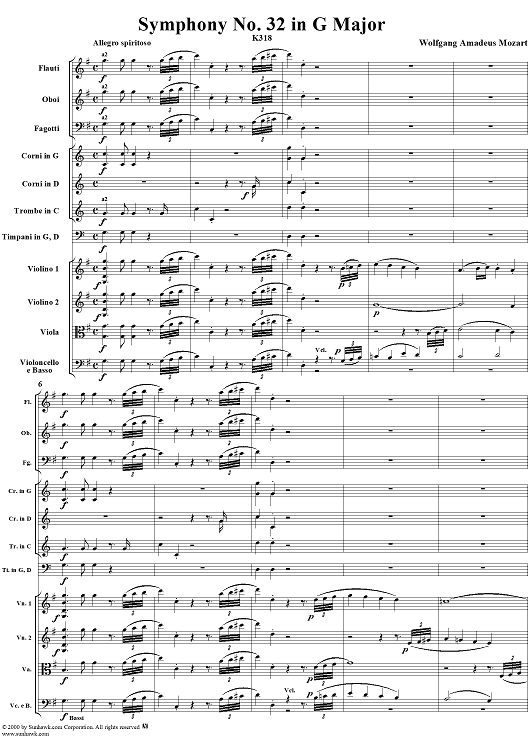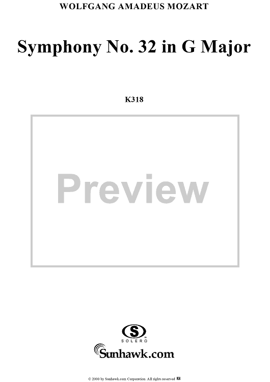 "Symphony No. 32 in G Major, K318 - Full Score" Sheet Music by Wolfgang Amadeus Mozart