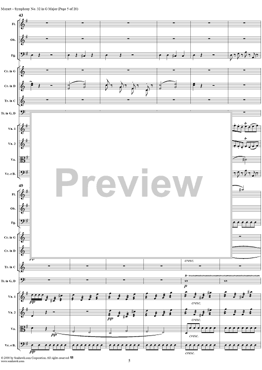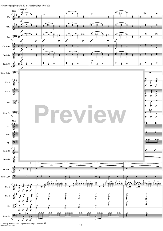 Digital Sheet Music for Symphony No. 32 in G Major, K318 - Full Score by Wolfgang Amadeus Mozart scored for Orchestra; id:236502