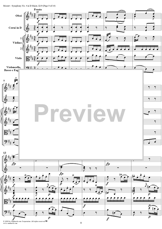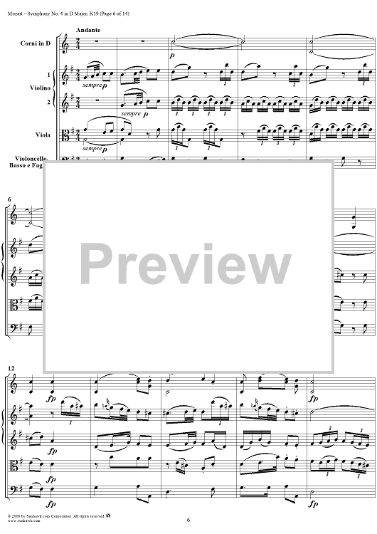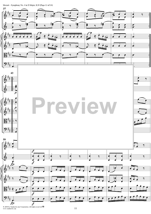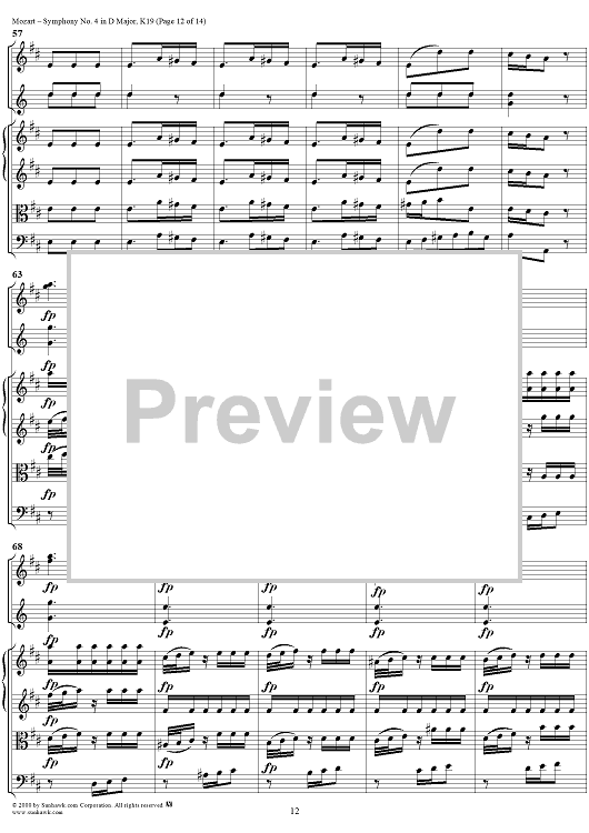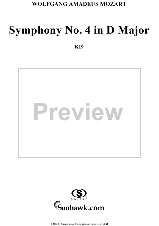 Digital Sheet Music for Symphony No. 4 in D Major, K19 - Full Score by Wolfgang Amadeus Mozart scored for Orchestra; id:241212