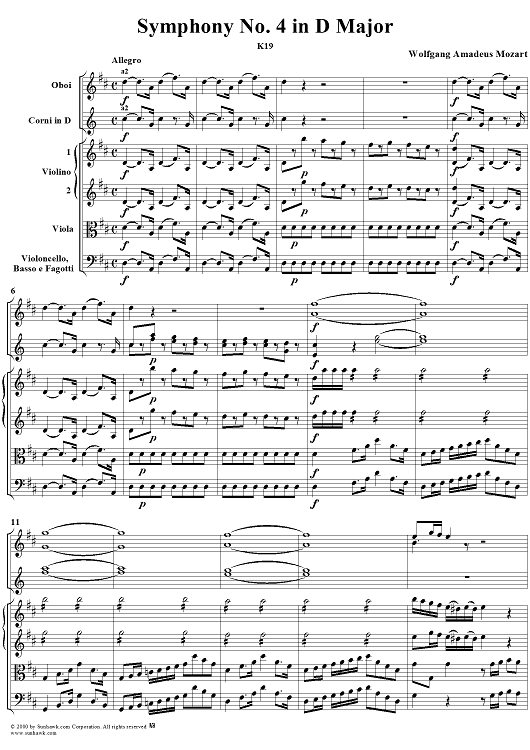 "Symphony No. 4 in D Major, K19 - Full Score" Sheet Music by Wolfgang Amadeus Mozart