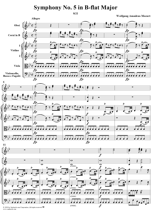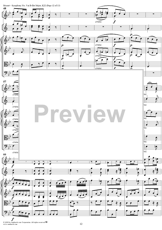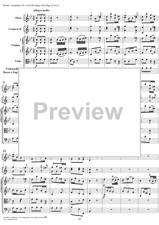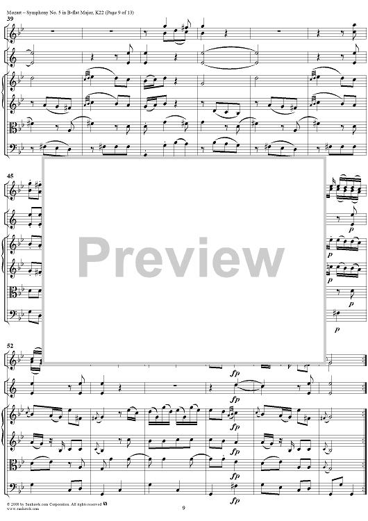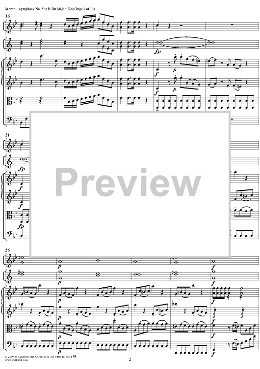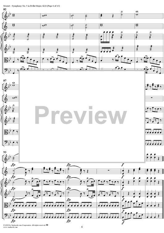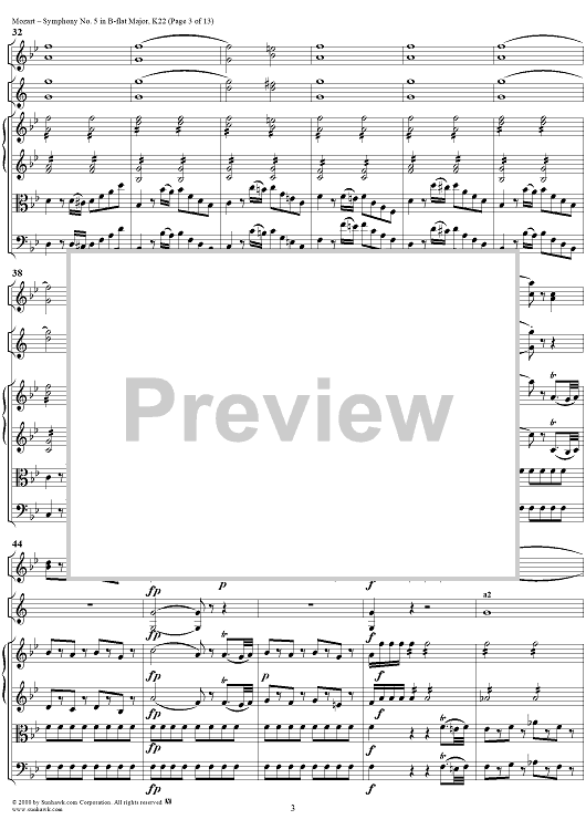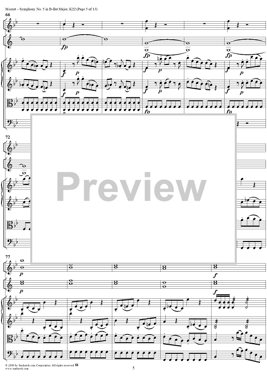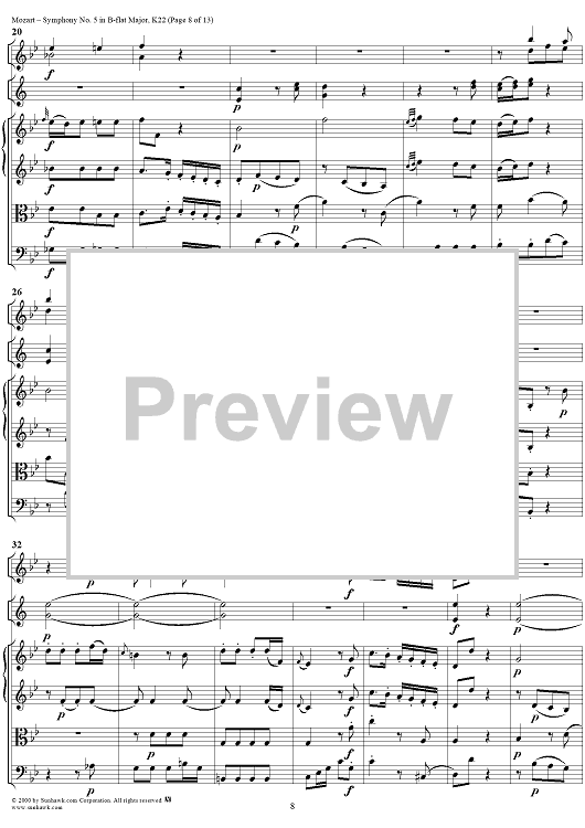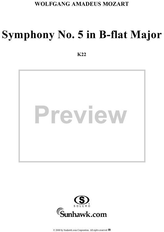 Digital Sheet Music for Symphony No. 5 in B-flat Major, K22 - Full Score by Wolfgang Amadeus Mozart scored for Orchestra; id:252528