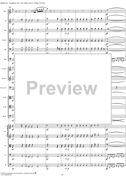 Digital Sheet Music for Symphony No. 5, Movement 4 - Full Score by Ludwig van Beethoven scored for Orchestra; id:275534