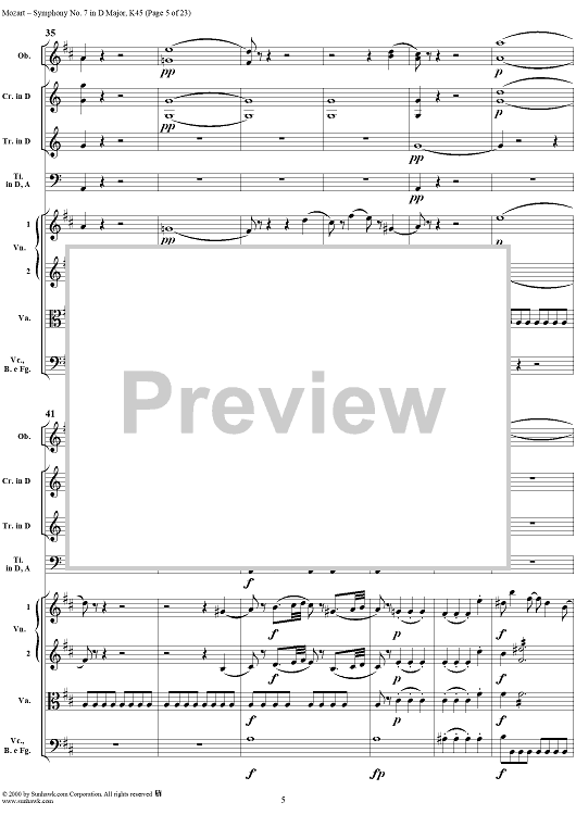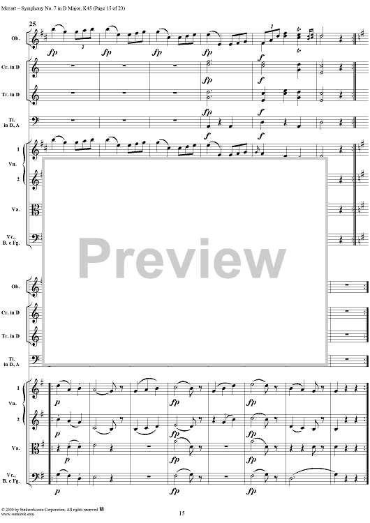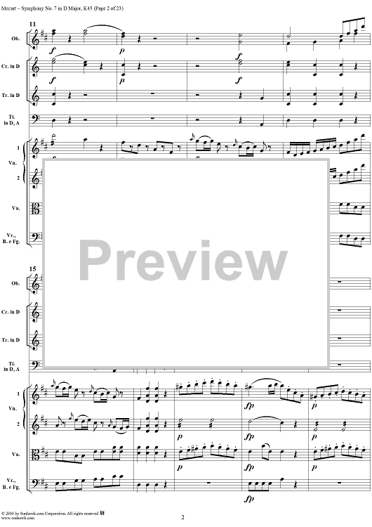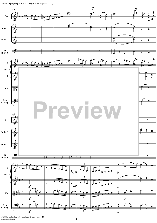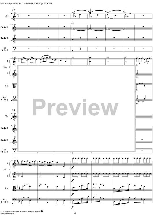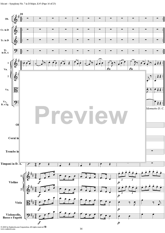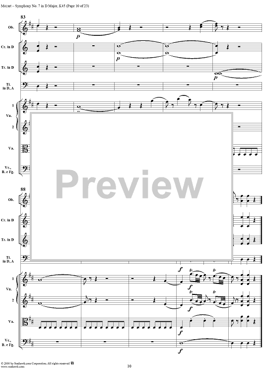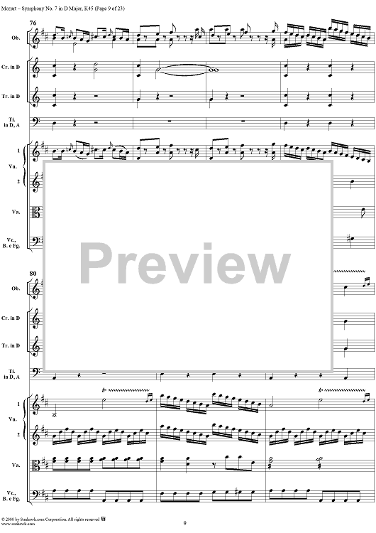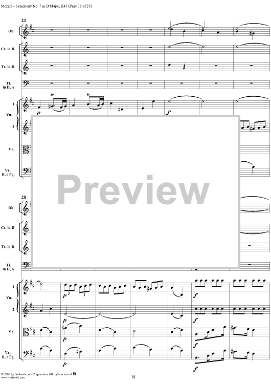 Digital Sheet Music for Symphony No. 7 in D Major, K45 - Full Score by Wolfgang Amadeus Mozart scored for Orchestra; id:252663