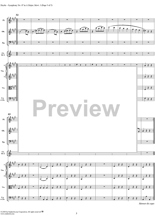 Digital Sheet Music for Symphony No. 87 in A Major movt. 3 - Hob1/87 - Full Score by Franz Joseph Haydn scored for Orchestra; id:265915