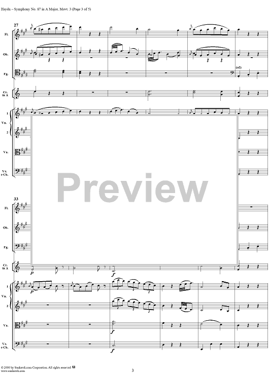 "Symphony No. 87 in A Major movt. 3 - Hob1/87 - Full Score" Sheet Music by Franz Joseph Haydn