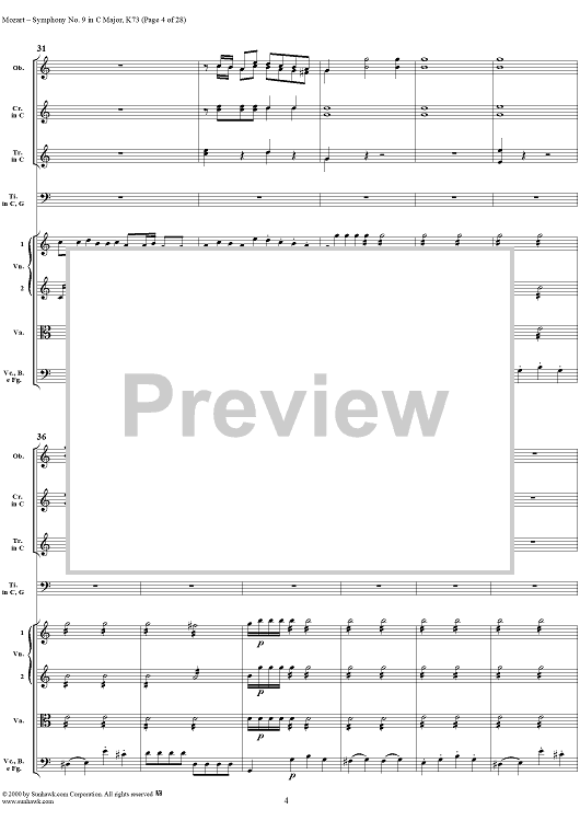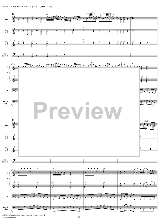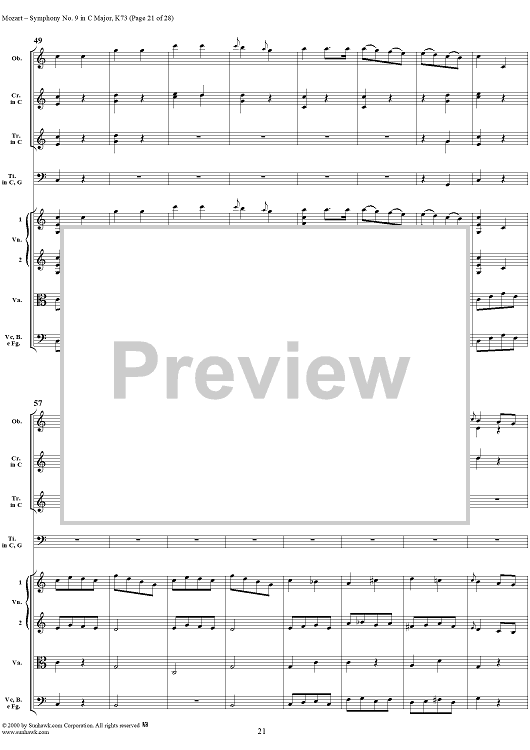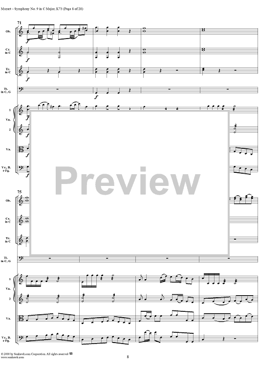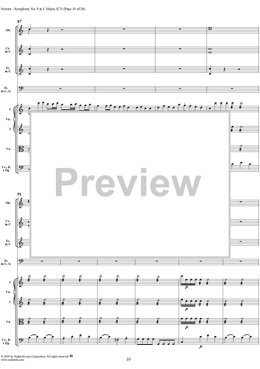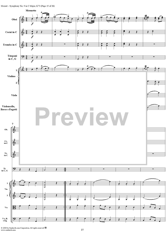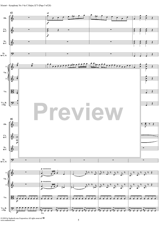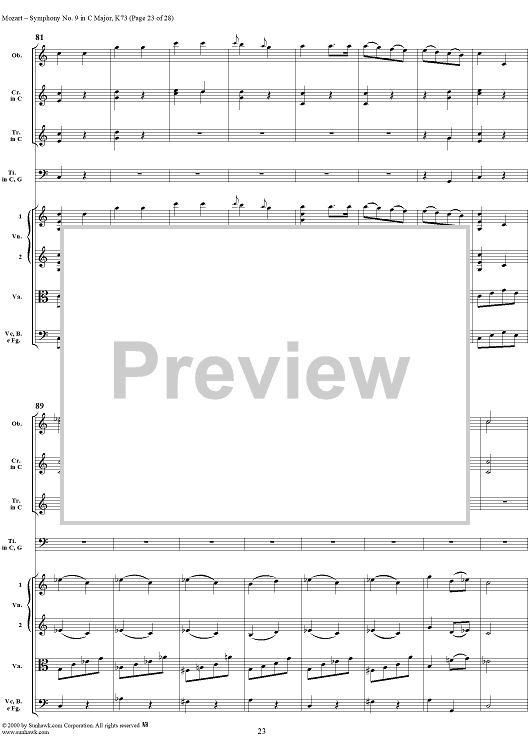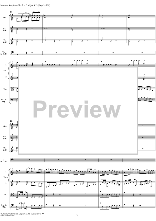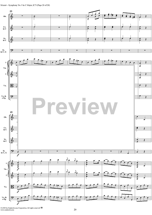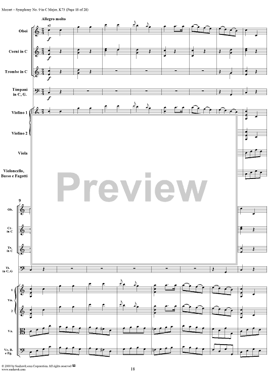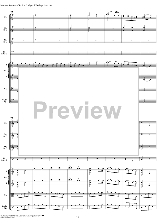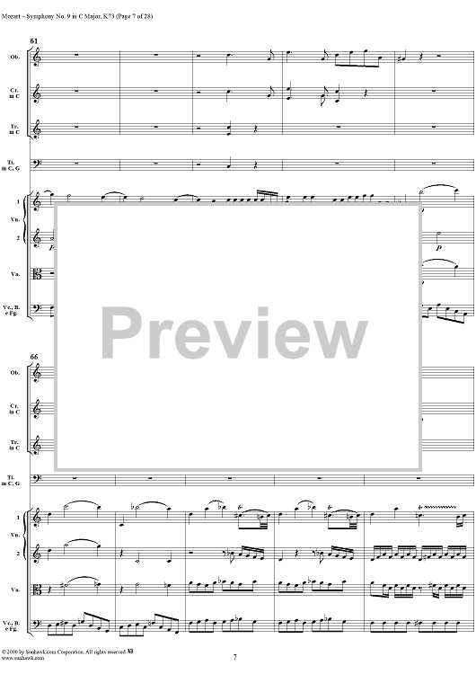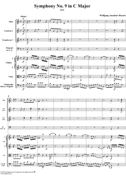 Digital Sheet Music for Symphony No. 9 in C Major, K73 - Full Score by Wolfgang Amadeus Mozart scored for Orchestra; id:220768