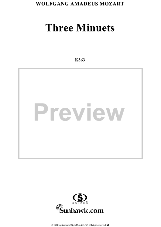 "Three Menuette, K363" Sheet Music by Wolfgang Amadeus Mozart