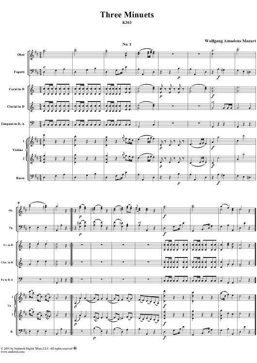Digital Sheet Music for Three Menuette, K363 by Wolfgang Amadeus Mozart scored for Orchestra; id:270614