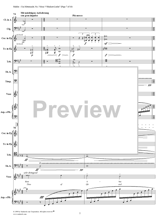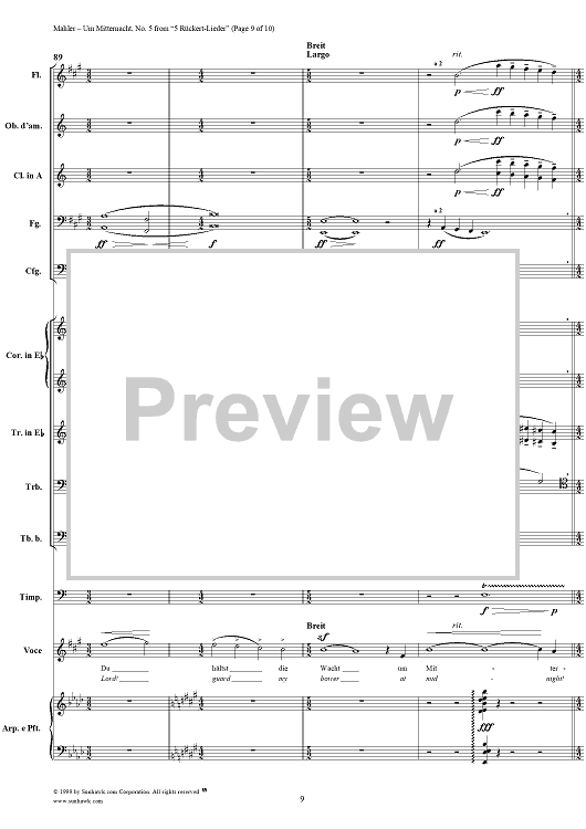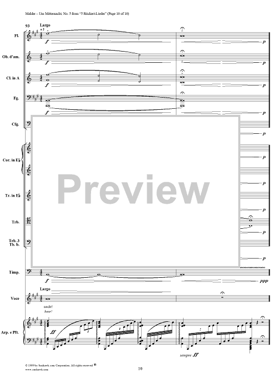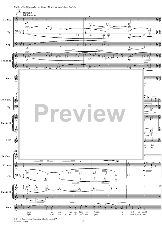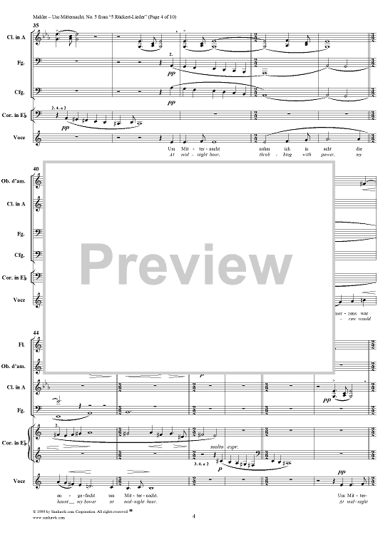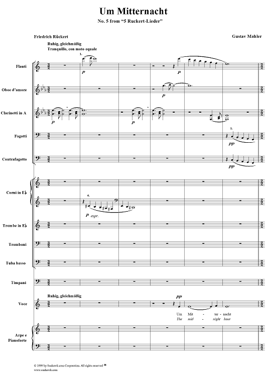Digital Sheet Music for Um mitternacht - No. 5 from "5 Rückert-Lieder" by Gustav Mahler, Friedrich Rückert scored for Voice/Chamber Orchestra; id:250738