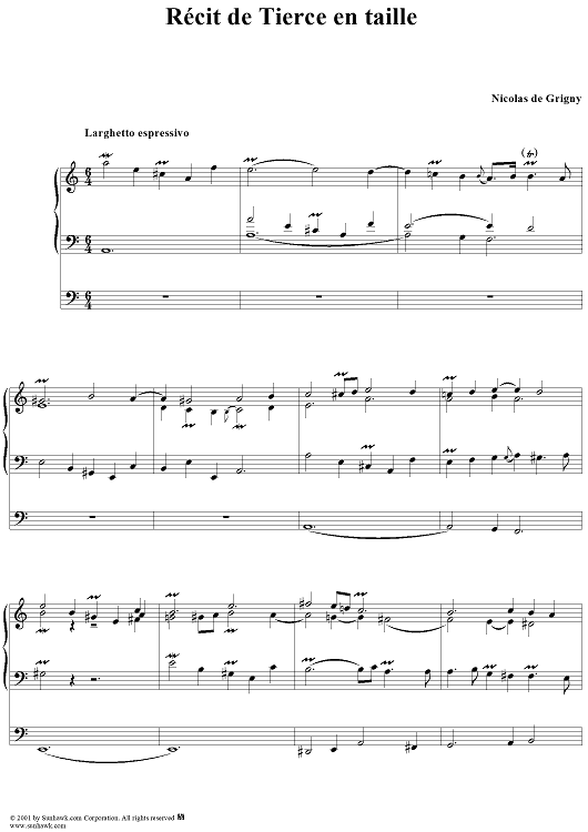 "Récit de Tierce en taille" Sheet Music by Nicolas De Grigny