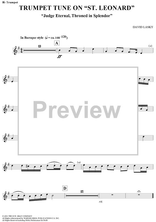 "Trumpet Tune - B-flat Trumpet" Sheet Music by David Lasky