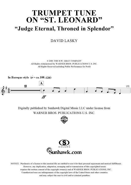 Digital Sheet Music for Trumpet Tune - B-flat Trumpet by David Lasky scored for Trumpet/Organ; id:286894