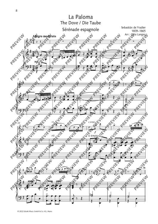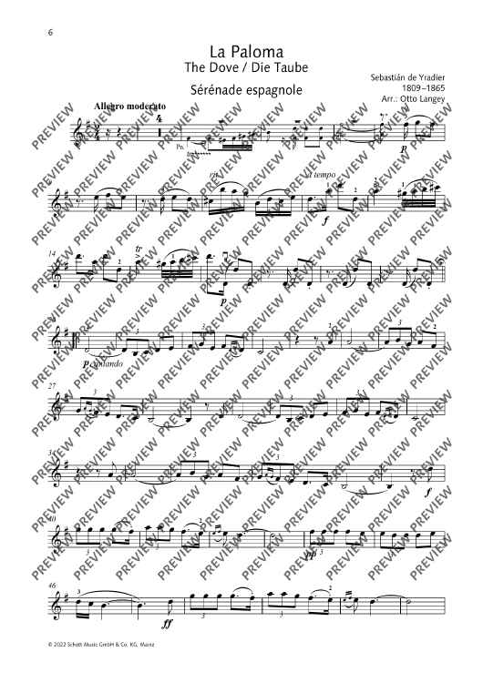 Digital Sheet Music for La Paloma by Otto Langey, Sebastián de Yradier scored for Violin And Piano; id:497394
