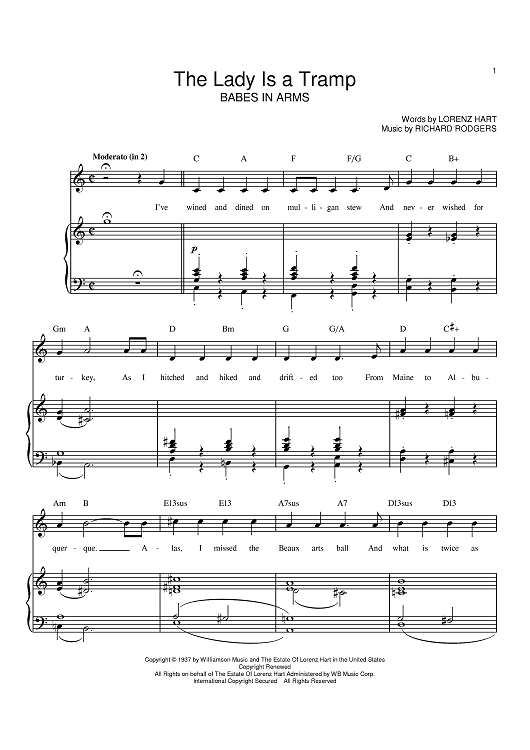 Digital Sheet Music for The Lady Is A Tramp by Frank Sinatra, Richard Rodgers, Tony Bennett, Ella Fitzgerald, Lorenz Hart, Lena Horne scored for Piano/Vocal/Chords; id:369736