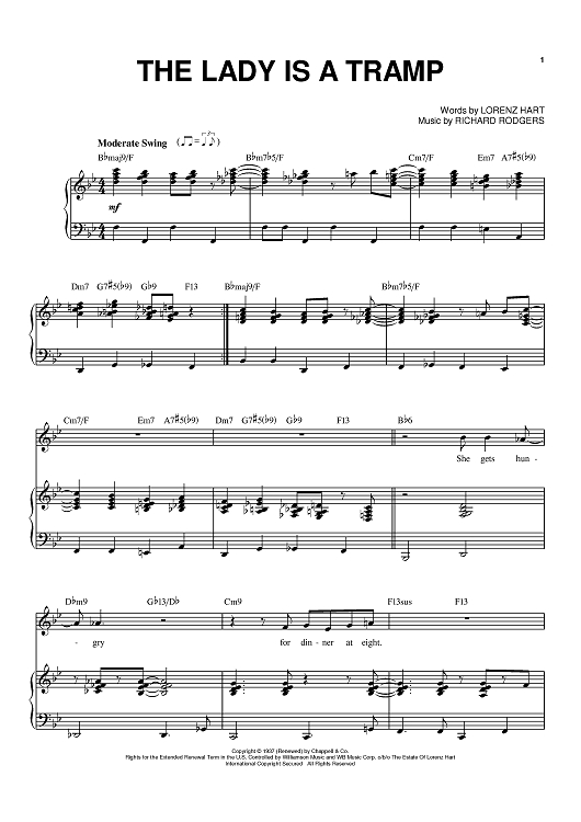 Digital Sheet Music for The Lady Is A Tramp by Frank Sinatra, Richard Rodgers, Tony Bennett, Ella Fitzgerald, Lorenz Hart, Lena Horne scored for Piano/Vocal/Chords; id:390416