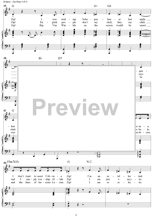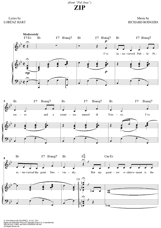 Digital Sheet Music for Zip (from "Pal Joey") by Richard Rodgers, Lorenz Hart scored for Piano/Vocal/Chords; id:438052
