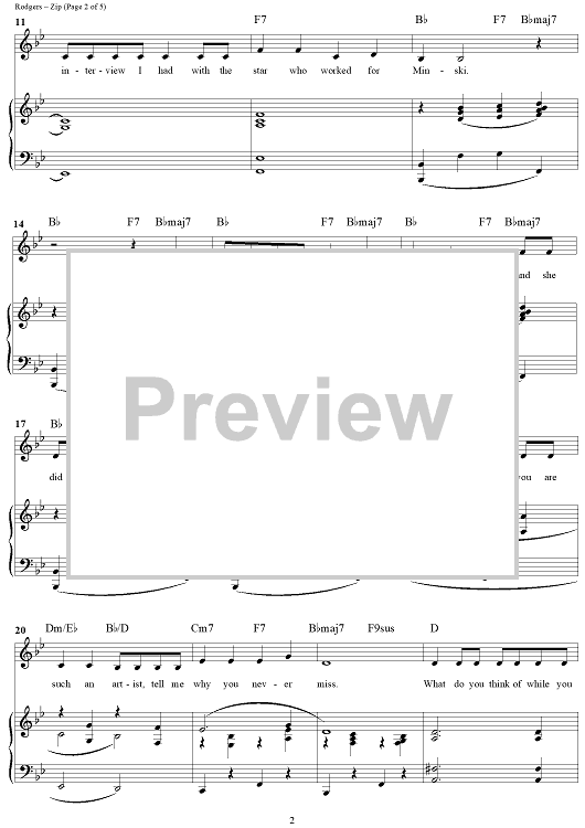 "Zip (from "Pal Joey")" Sheet Music by Richard Rodgers