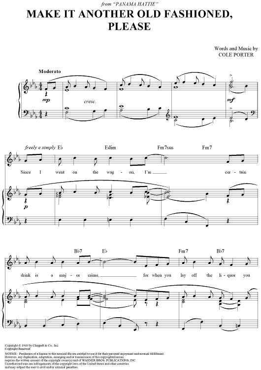 "Make It Another Old Fashioned, Please" Sheet Music by Cole Porter