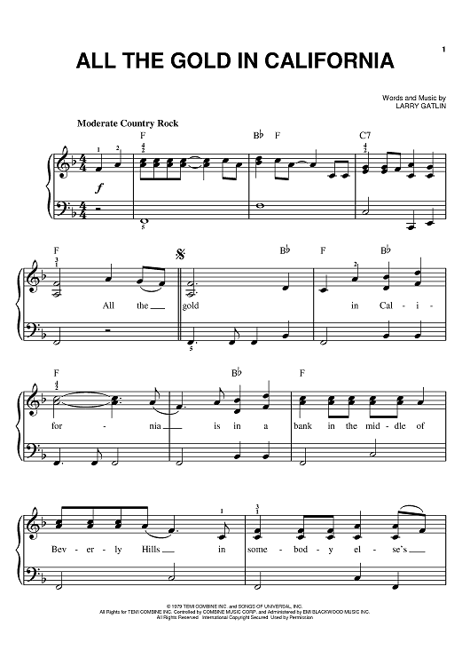 Digital Sheet Music for All The Gold In California by Larry Gatlin, The Gatlin Brothers scored for Easy Piano; id:367398