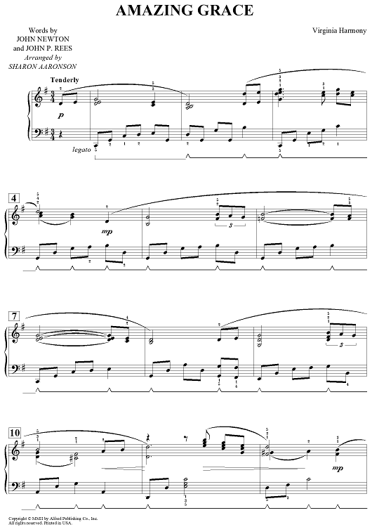 "Amazing Grace" Sheet Music by Virginia Harmony