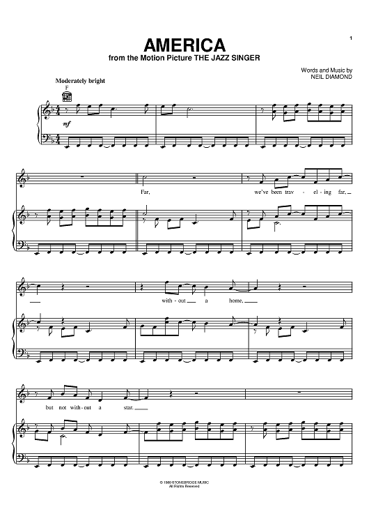 Digital Sheet Music for America by Neil Diamond scored for Piano/Vocal/Chords; id:371311