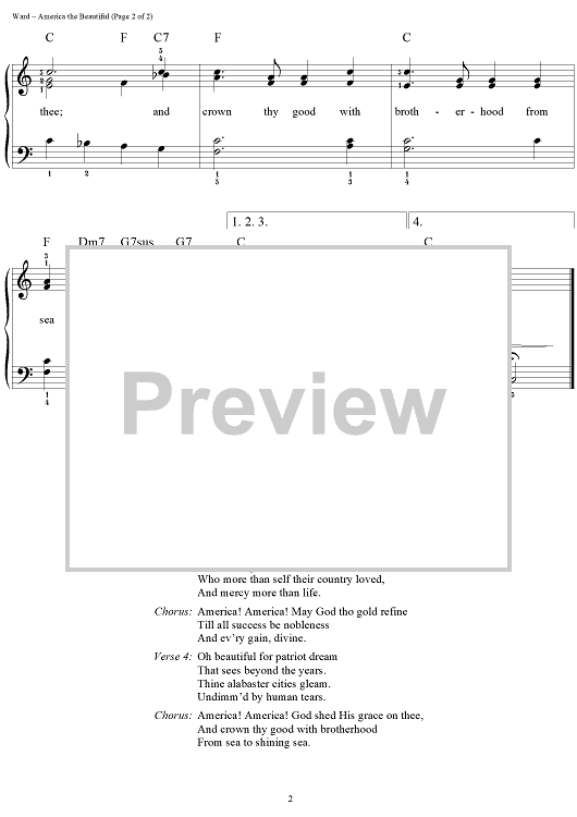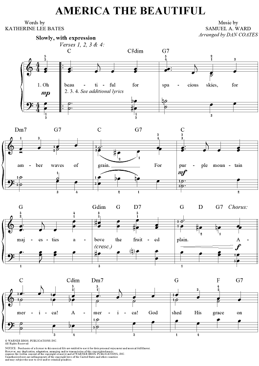 Digital Sheet Music for America the Beautiful by Dan Coates, Samuel A. Ward, Katherine Lee Bates scored for Easy Piano/Vocal; id:284484