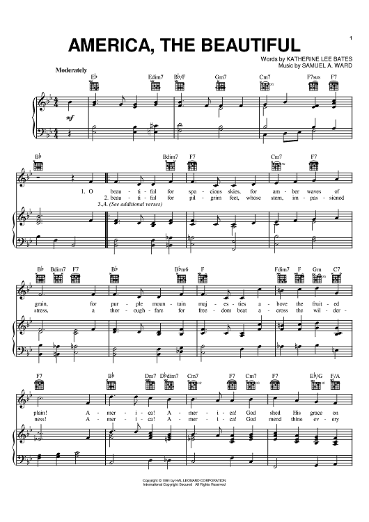 Digital Sheet Music for America, The Beautiful by Samuel A. Ward, Katherine Lee Bates scored for Piano/Vocal/Chords; id:368831