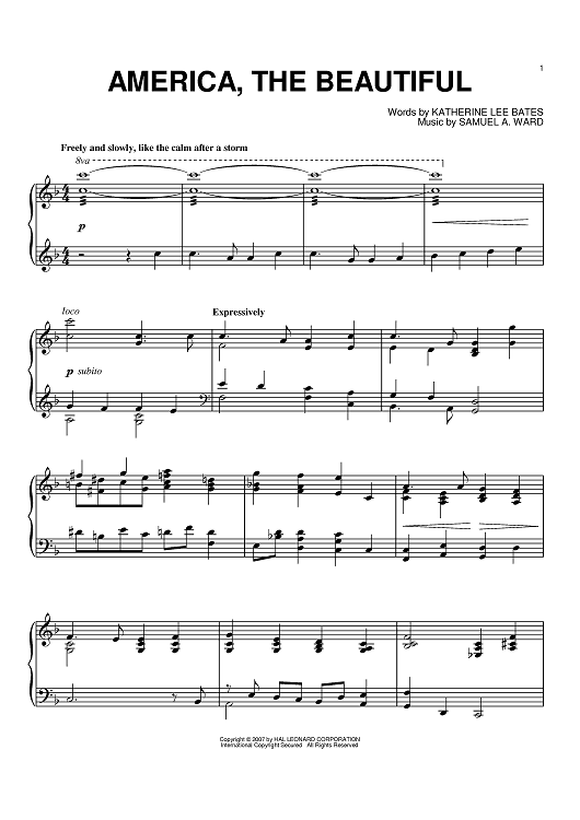 "America, The Beautiful" Sheet Music by Katherine Lee Bates