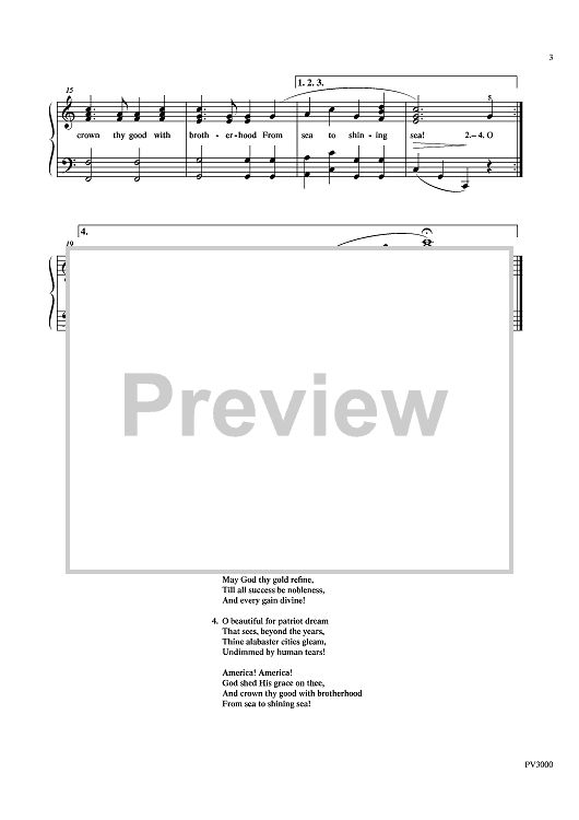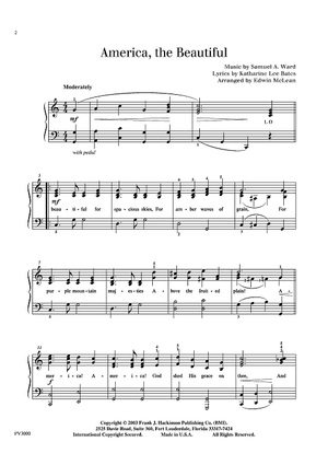 This beautiful arrangement of the sacred American anthem achieves a grand sound while remaining accessible to the late intermediate performer. With its hymn-like setting, octave doubling in the bass, and sophisticated voice leading, it makes a perfect selection for all occasions. Complete verses provided.
