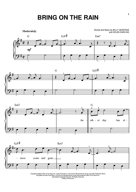 Digital Sheet Music for Bring On The Rain by Jo Dee Messina, Tim McGraw, Billy Montana, Helen Darling scored for Easy Piano; id:369682