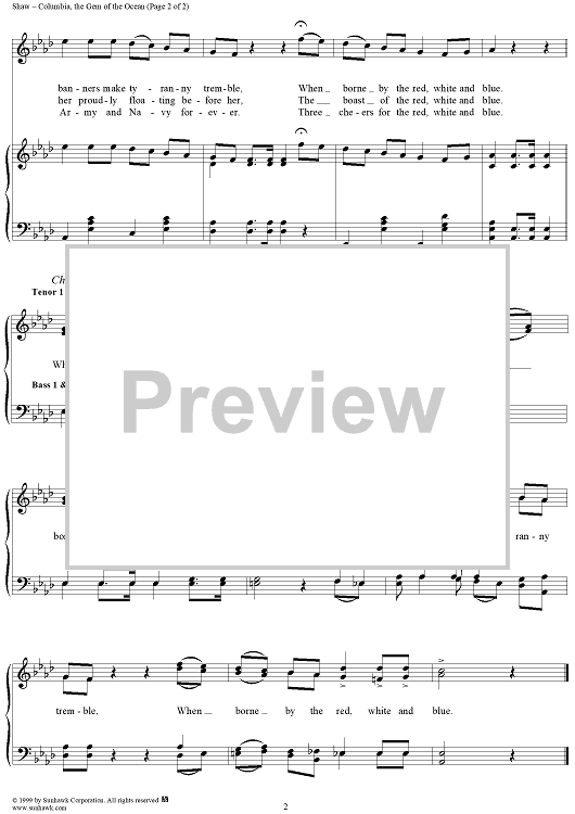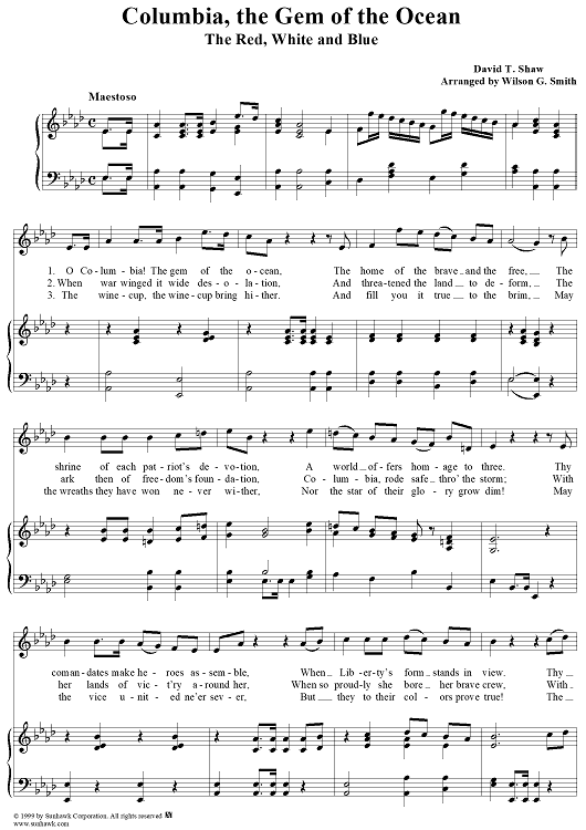 Digital Sheet Music for Columbia, The Gem of the Ocean (The Red, White, and Blue) by Wilson G. Smith, David T. Shaw scored for Piano/Vocal; id:260963