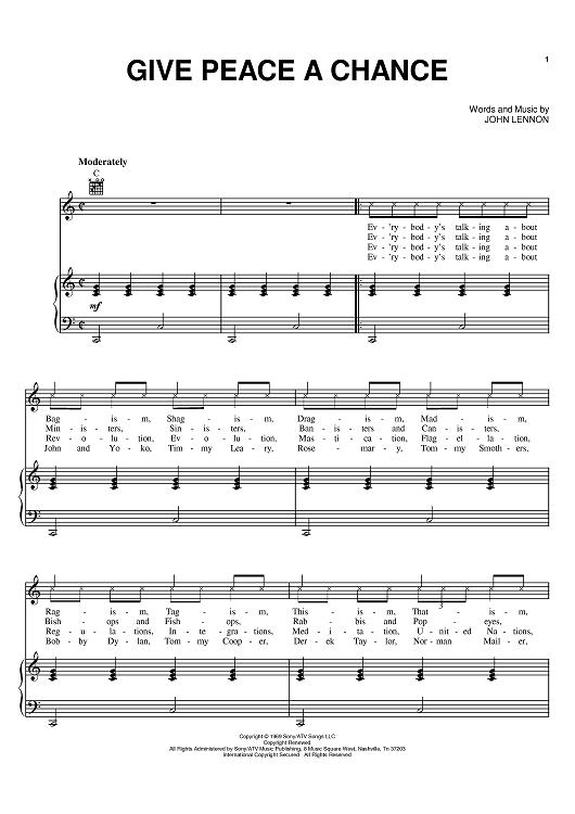 Digital Sheet Music for Give Peace A Chance by John Lennon, Plastic Ono Band scored for Piano/Vocal/Chords; id:383042