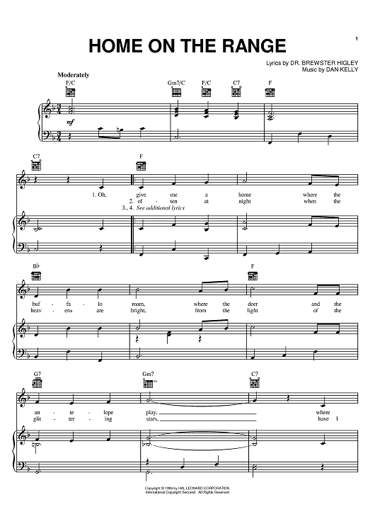 Digital Sheet Music for Home On The Range by Roy Rogers, Dan Kelly, Dr. Brewster Higley, Ken Maynard, Tex Ritter scored for Piano/Vocal/Chords; id:368475