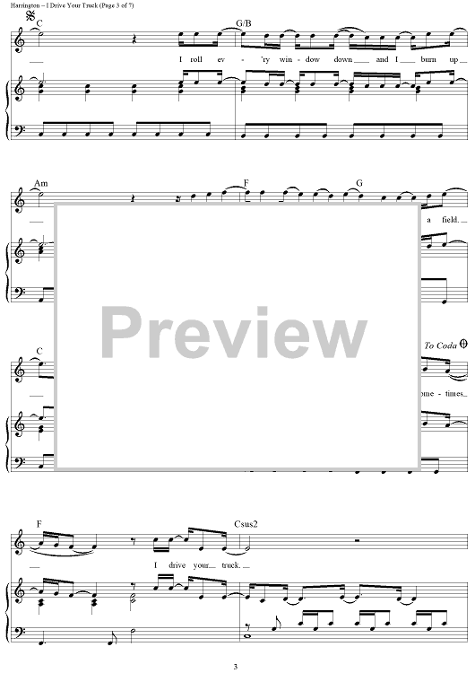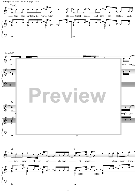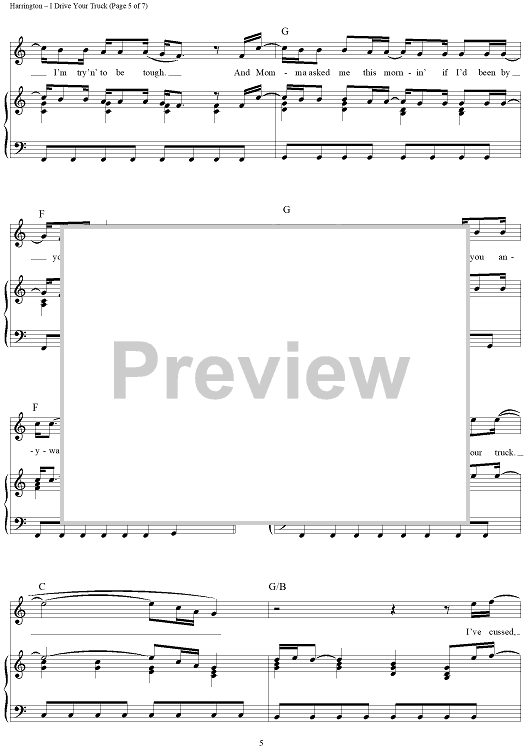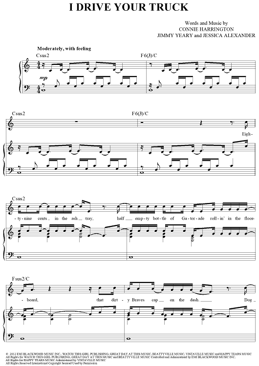 Digital Sheet Music for I Drive Your Truck by Connie Harrington, Jimmy Yeary, Jessi Alexander, Lee Brice scored for Piano/Vocal/Chords; id:435306