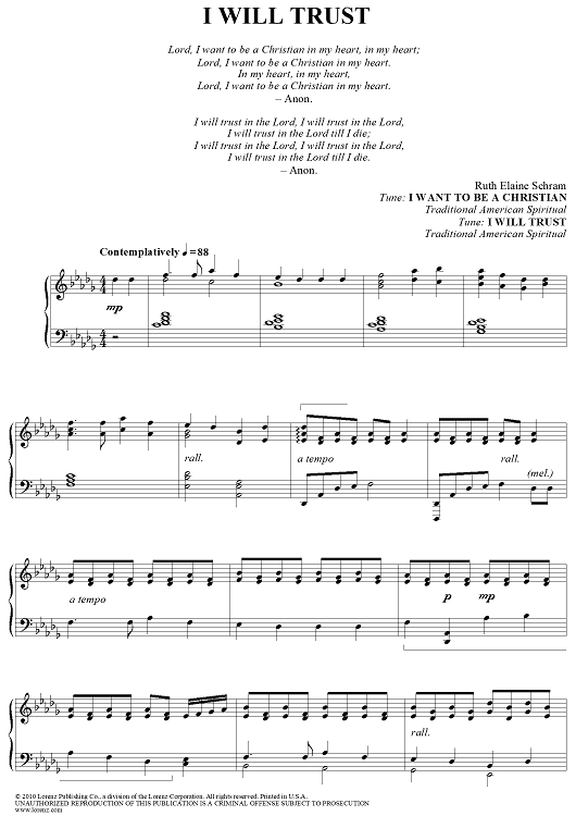 Digital Sheet Music for I Will Trust by Various, Ruth Elaine Schram scored for Piano Solo; id:436770