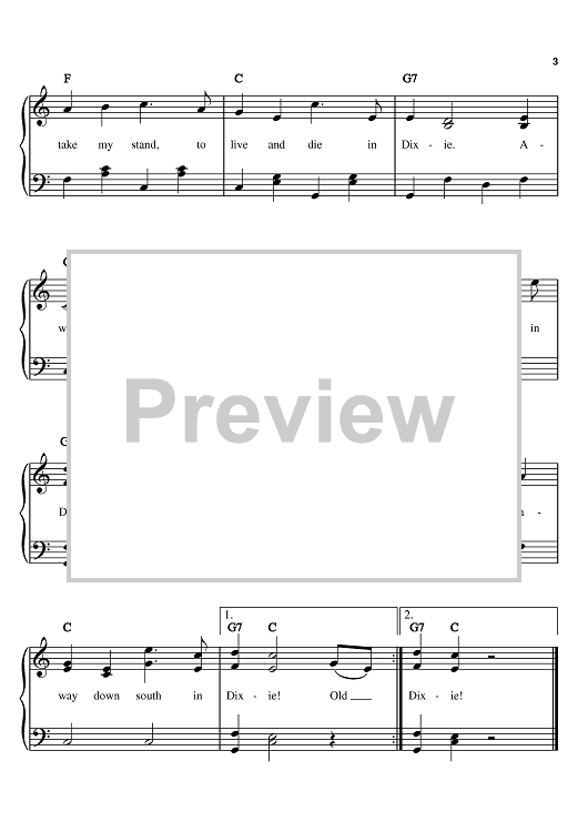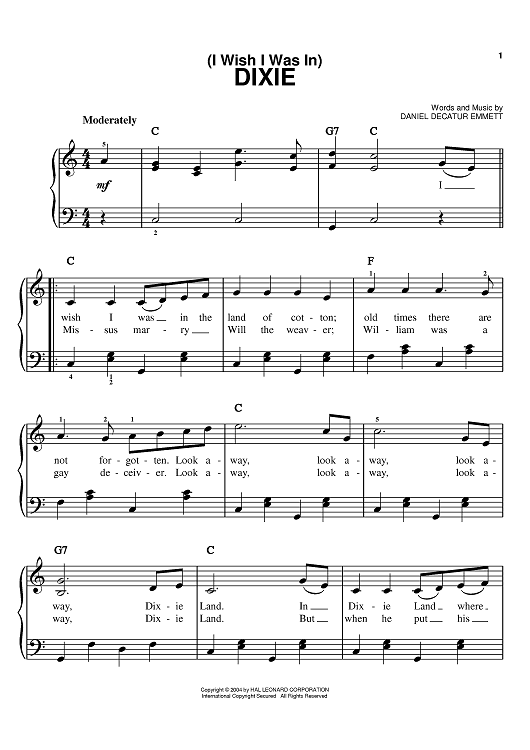 Digital Sheet Music for (I Wish I Was In) Dixie by Lynyrd Skynyrd, Daniel Decatur Emmett, Boxcar Willie scored for Easy Piano; id:373837