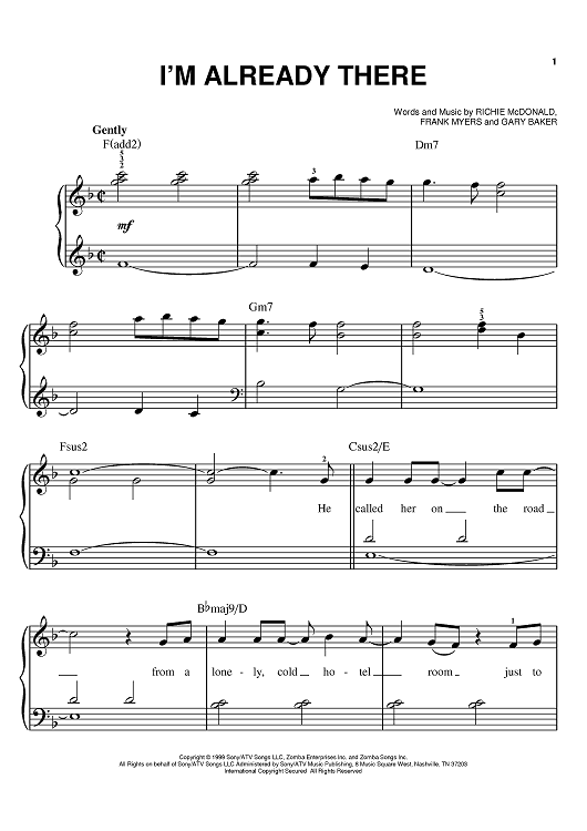 Digital Sheet Music for I'm Already There by Lonestar, Gary Baker, Frank Myers, Richie McDonald scored for Easy Piano; id:369673