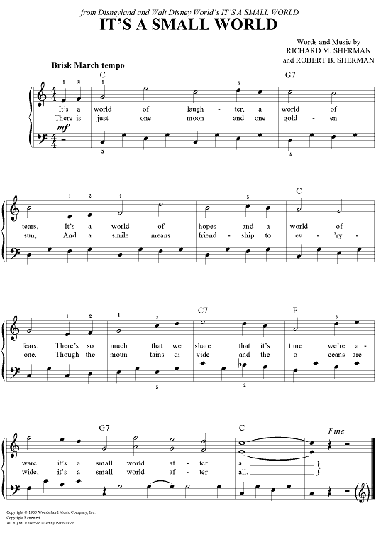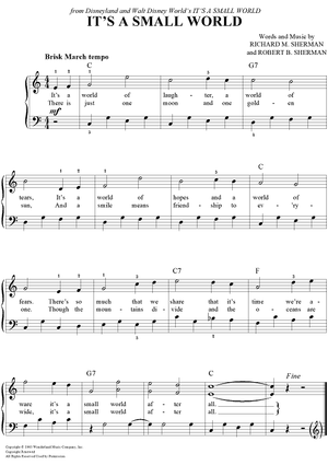 Digital Sheet Music for It's A Small World by Richard M. Sherman, Robert B. Sherman scored for Easy Piano/Vocal/Chords; id:386806