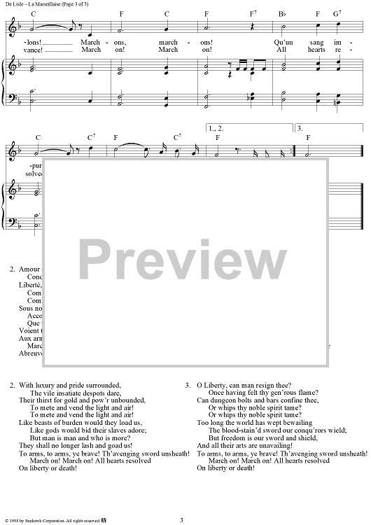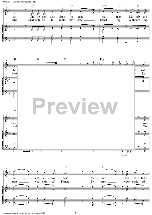 Digital Sheet Music for La Marseillaise by Claude-Joseph Rouget de Lisle scored for Piano/Vocal/Chords; id:96079