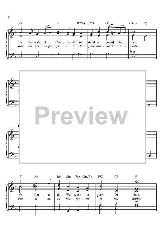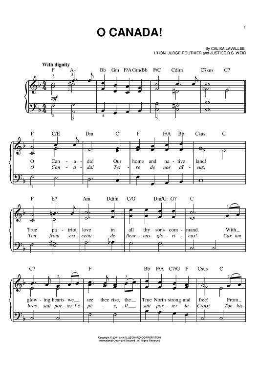 Digital Sheet Music for O Canada! by Calixa Lavallée, Sir Adolph-Basile Routhier, Robert Stanley Weir scored for Easy Piano; id:373859