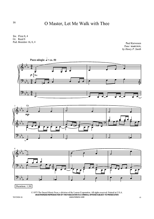 Digital Sheet Music for O Master, Let Me Walk with Thee by Henry Smith, Paul Karvonen scored for Organ Solo; id:434873