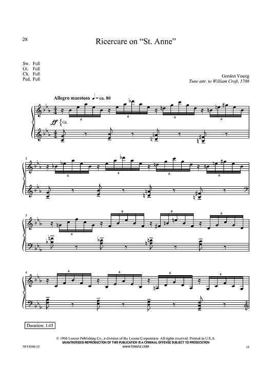 Digital Sheet Music for Ricercare on “St. Anne” by William Croft, Gordon Young scored for Organ Solo; id:434877