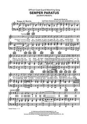 "Semper Paratus (Always Ready)" Sheet Music by Captain Francis Saltus Van Boskerck, U.S.C.G.