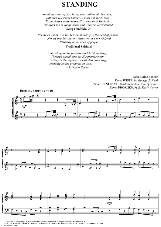 Digital Sheet Music for Standing by Various, Ruth Elaine Schram scored for Piano Solo; id:436772