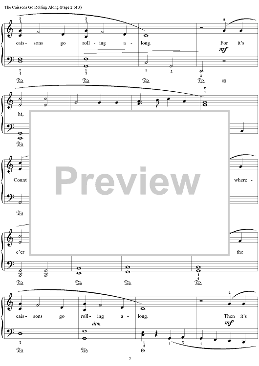 "The Caissons Go Rolling Along" Sheet Music by Edmund L. Gruber