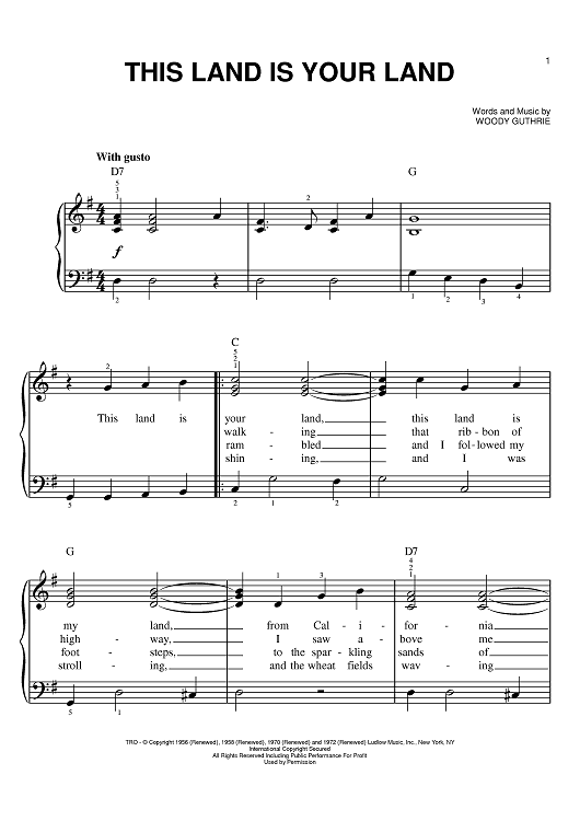 "This Land Is Your Land" Sheet Music by Woody Guthrie