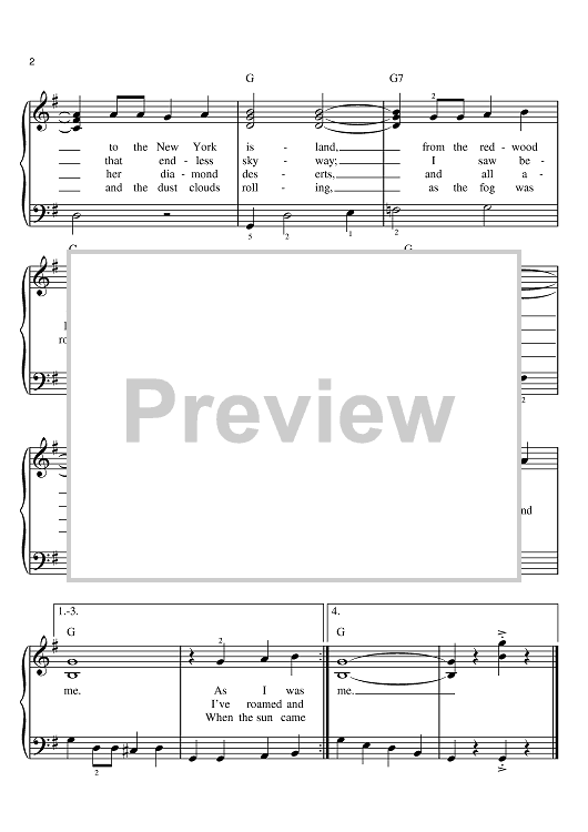 Digital Sheet Music for This Land Is Your Land by Woody Guthrie, Arlo Guthrie, The New Christy Minstrels scored for Easy Piano; id:386809