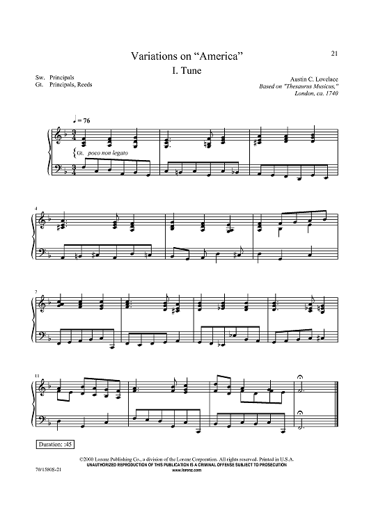 Digital Sheet Music for Variations on “America” by Unknown, Austin C. Lovelace scored for Organ Solo; id:434875