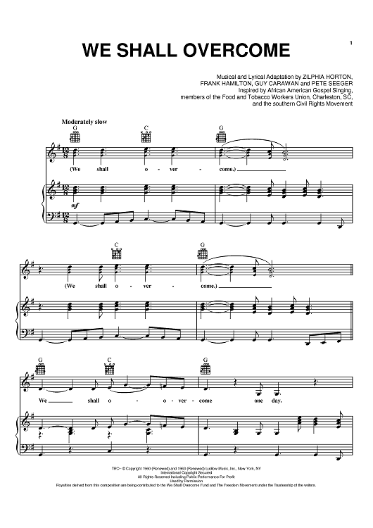Digital Sheet Music for We Shall Overcome by Joan Baez, Peter Seeger, Guy Carawan, Zilphia Horton, Frank Hamilton scored for Piano/Vocal/Chords; id:396122